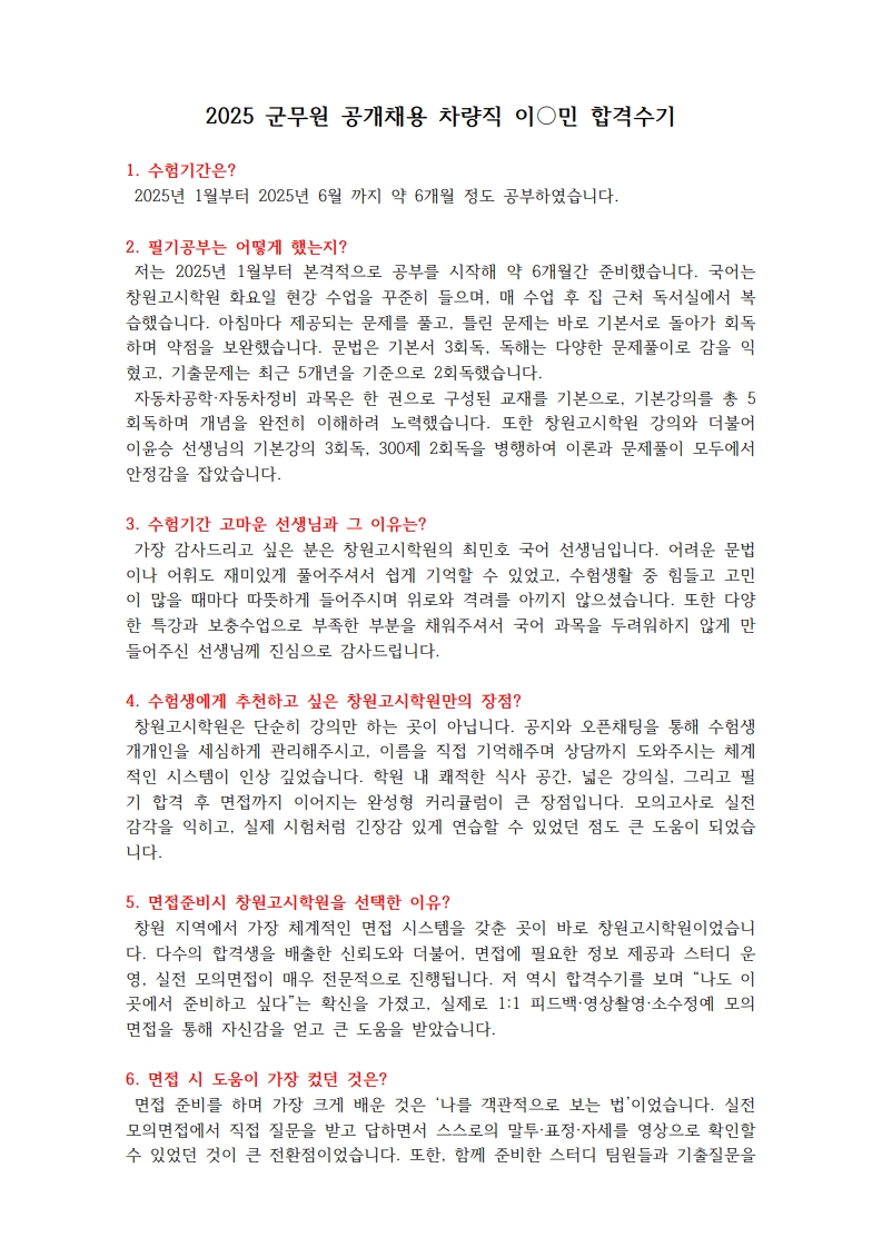 2025 군무원 공개채용 육군 차량직 이O민 합격수기